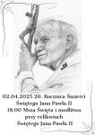 02 kwietnia 2025 roku przypada 20. Rocznica śmierci św. Jana Pawła II. Po Mszy Świętej o 18.00 modlitwa przy relikwiach św. Jana Pawła II. Zapraszamy do modlitwy.